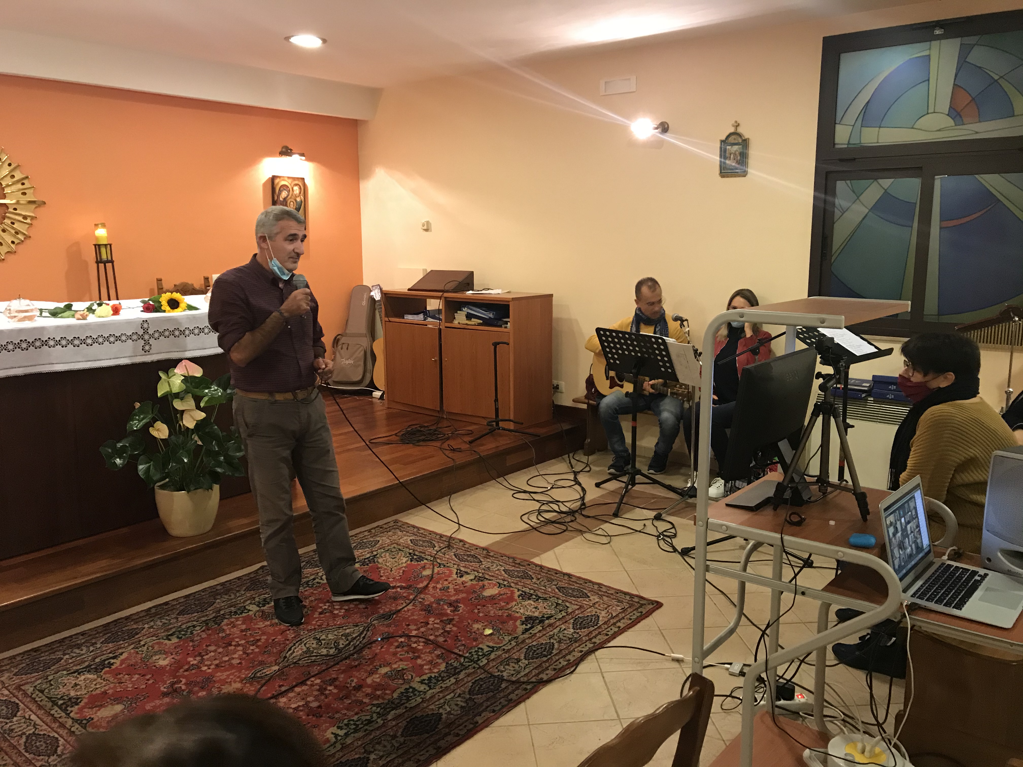 Momento straordinario è stato quello in cui è stato esposto Gesù nel Santissimo Sacramento e una forte preghiera di lode si è innalzata dalla cappella ma anche da tutte quelle piccole cappelle che erano diventate le case dalle quali erano collegati tanti fratelli; che dono vedere, attraverso gli schermi, tante mani alzate in segno di adorazione.